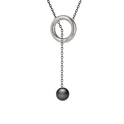 Siyah inci 8 ayar beyaz altın kolye (60 cm gümüş rolo zincir)