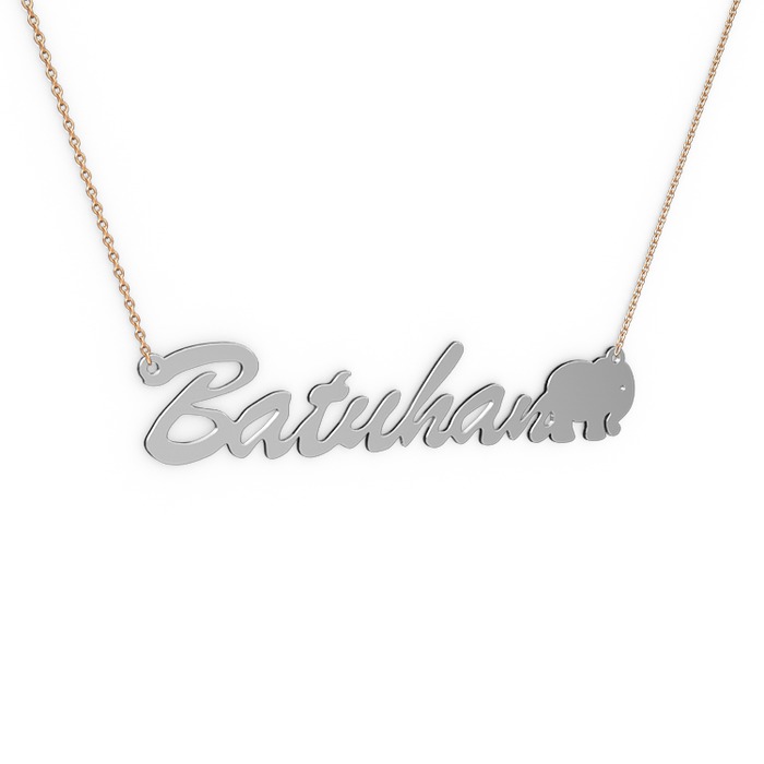 14 ayar beyaz altın kolye (7 karakterli el yazısı, 40 cm gümüş rolo zincir)
