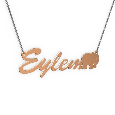 14 ayar rose altın kolye (5 karakterli el yazısı, 40 cm gümüş rolo zincir)