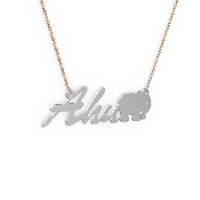 18 ayar beyaz altın kolye (3 karakterli el yazısı, 40 cm rose altın rolo zincir)