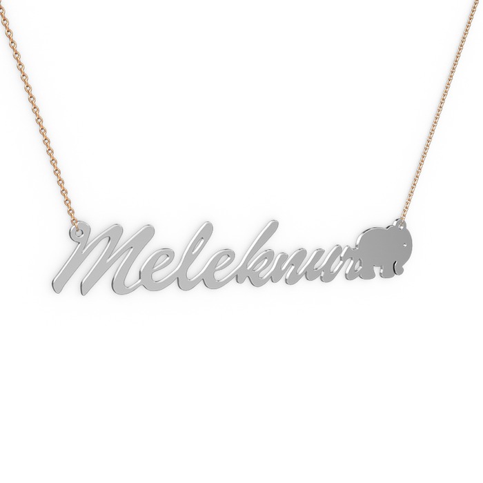 18 ayar beyaz altın kolye (8 karakterli el yazısı, 40 cm rose altın rolo zincir)
