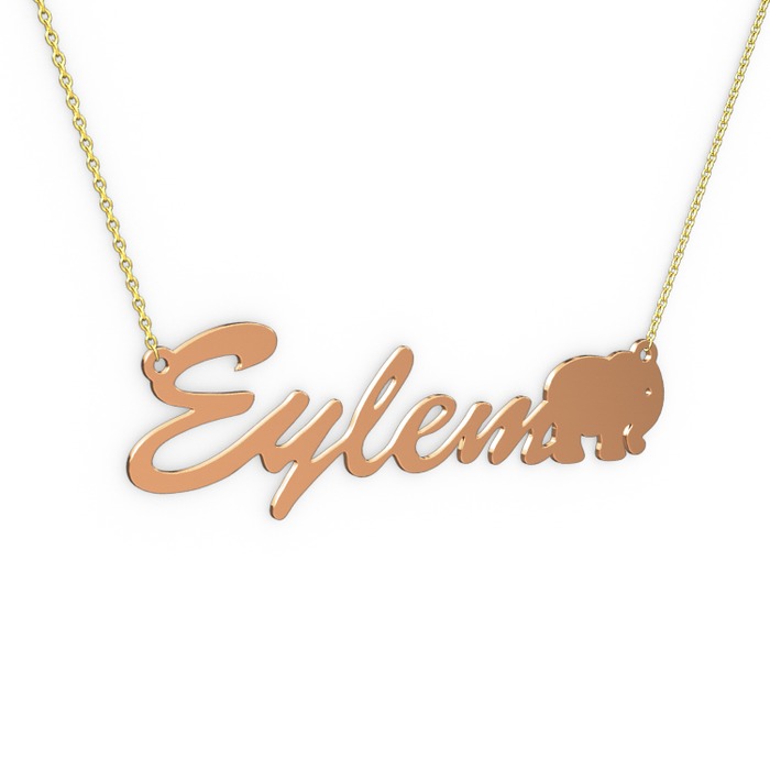 8 ayar rose altın kolye (5 karakterli el yazısı, 40 cm altın rolo zincir)