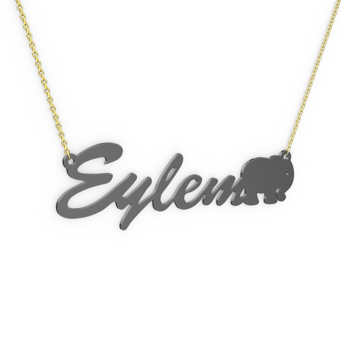 925 ayar siyah rodyum kaplama gümüş kolye (5 karakterli el yazısı, 40 cm altın rolo zincir)