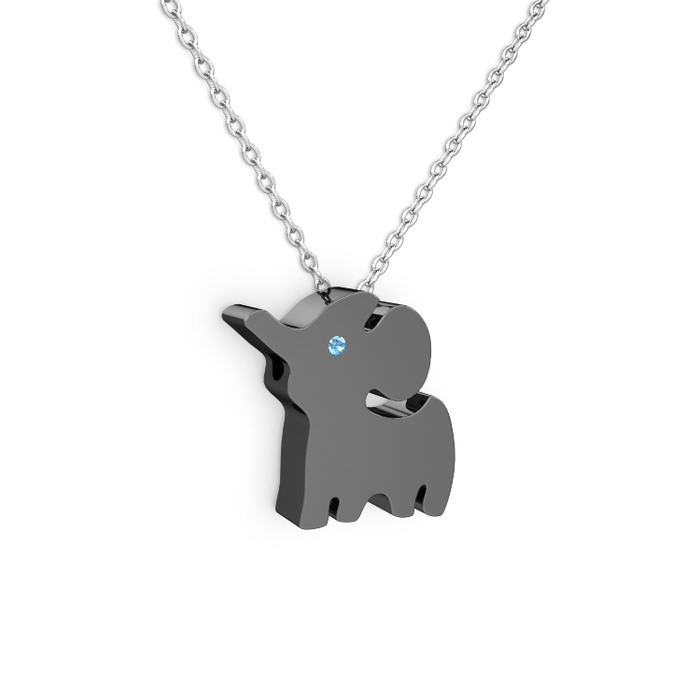 Akuamarin 925 ayar siyah rodyum kaplama gümüş kolye (40 cm gümüş rolo zincir)