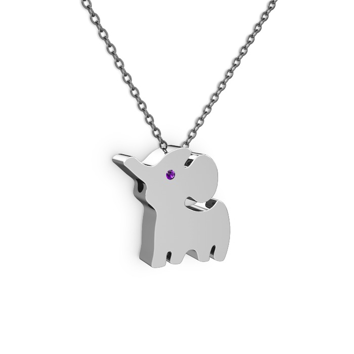 Ametist 14 ayar beyaz altın kolye (40 cm gümüş rolo zincir)