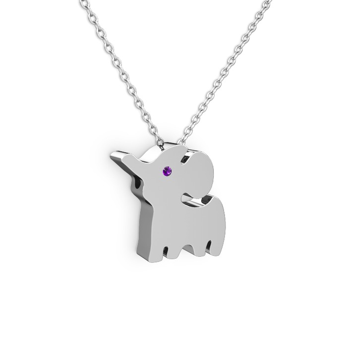 Ametist 18 ayar beyaz altın kolye (40 cm beyaz altın rolo zincir)