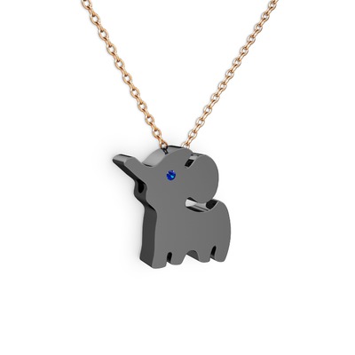 Lab safir 925 ayar siyah rodyum kaplama gümüş kolye (40 cm rose altın rolo zincir)