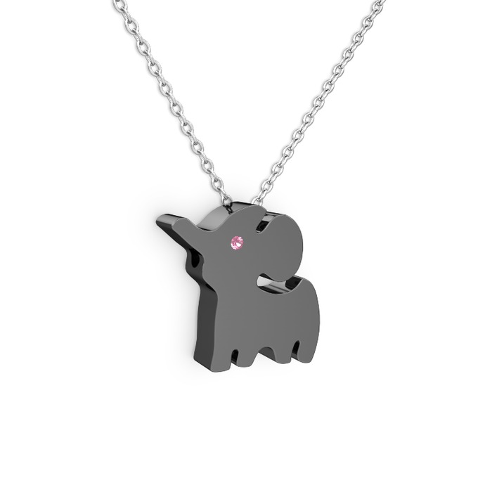 Pembe kuvars 925 ayar siyah rodyum kaplama gümüş kolye (40 cm gümüş rolo zincir)