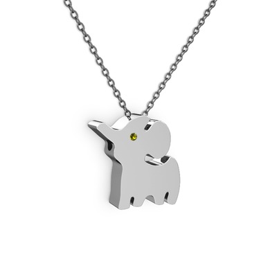 Peridot 14 ayar beyaz altın kolye (40 cm gümüş rolo zincir)