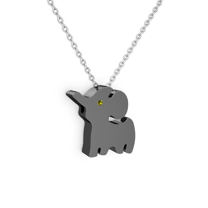 Peridot 925 ayar siyah rodyum kaplama gümüş kolye (40 cm beyaz altın rolo zincir)
