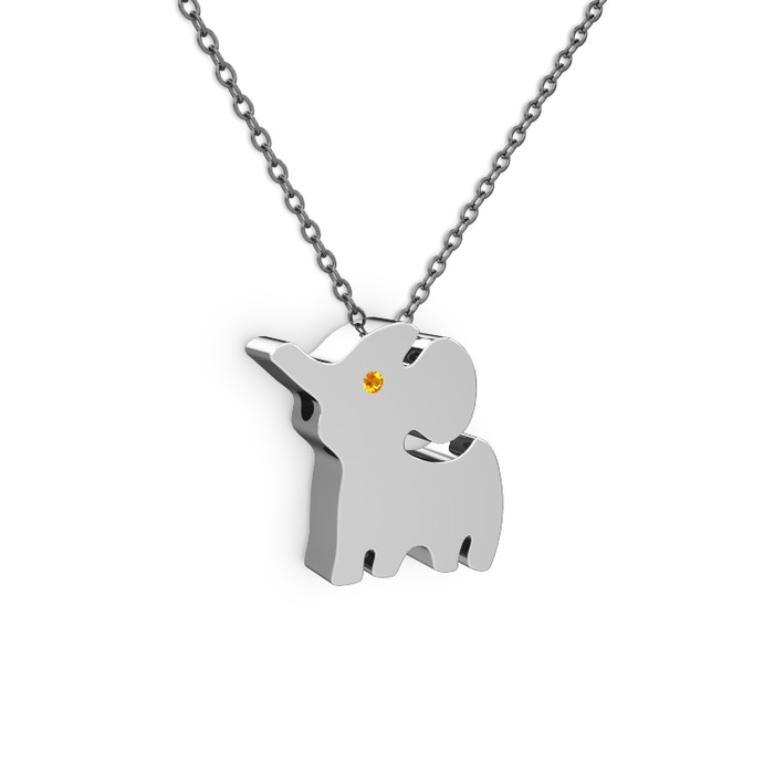 Sitrin 18 ayar beyaz altın kolye (40 cm gümüş rolo zincir)