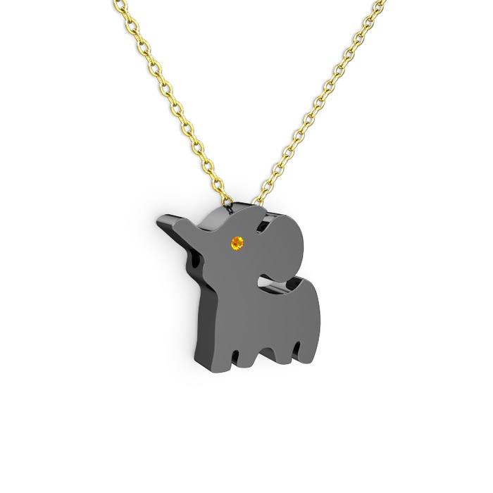 Sitrin 925 ayar siyah rodyum kaplama gümüş kolye (40 cm altın rolo zincir)