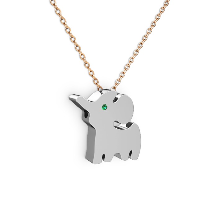 Yeşil kuvars 18 ayar beyaz altın kolye (40 cm rose altın rolo zincir)