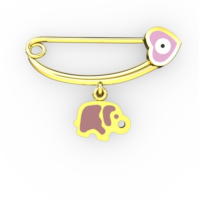 8 ayar altın nazar iğnesi (Pastel pembe mineli)