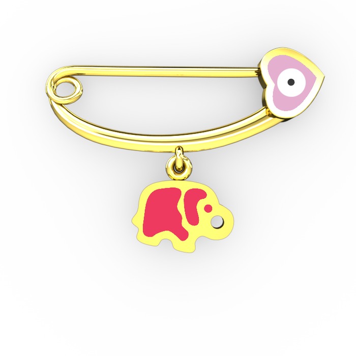 925 ayar altın kaplama gümüş nazar iğnesi (Pastel pembe mineli)
