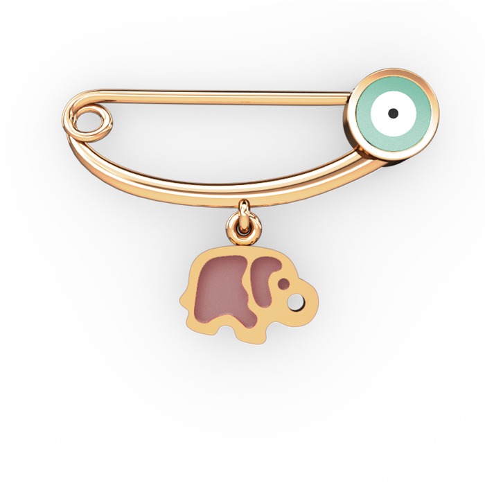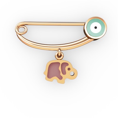 8 ayar rose altın nazar iğnesi (Pastel mavi mineli)