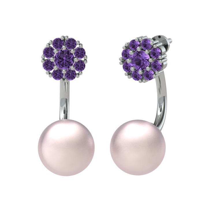 Ametist ve pembe inci 925 ayar gümüş küpe