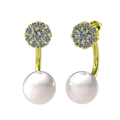 Beyaz zirkon ve inci 925 ayar altın kaplama gümüş küpe