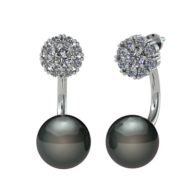 Beyaz zirkon ve siyah inci 925 ayar gümüş küpe
