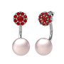 Garnet ve pembe inci 14 ayar beyaz altın küpe