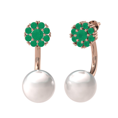 Kök zümrüt ve inci 14 ayar rose altın küpe