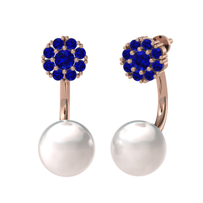 Lab safir ve inci 925 ayar rose altın kaplama gümüş küpe