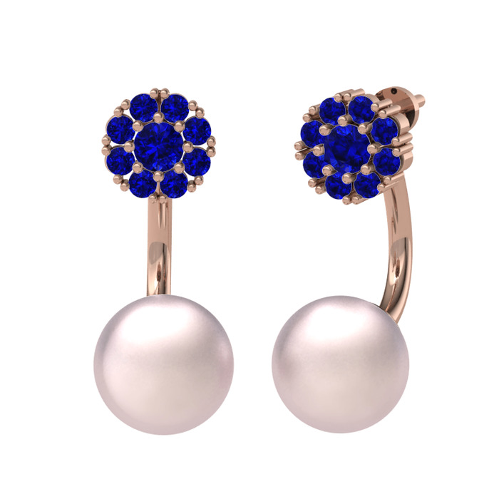 Lab safir ve pembe inci 925 ayar rose altın kaplama gümüş küpe