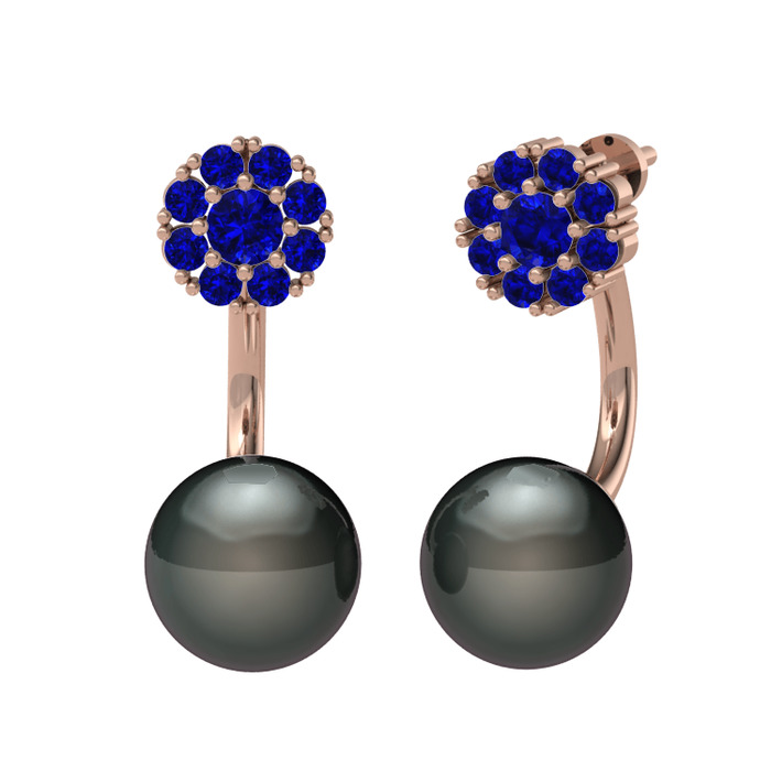 Lab safir ve siyah inci 18 ayar rose altın küpe