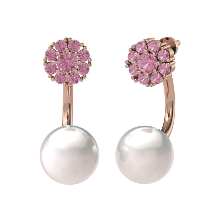 Pembe kuvars ve inci 8 ayar rose altın küpe