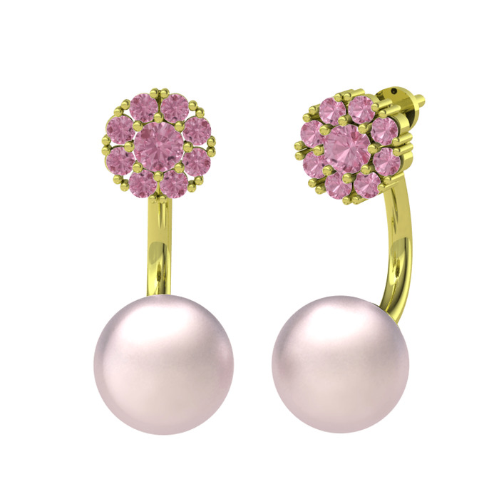 Pembe kuvars ve pembe inci 925 ayar altın kaplama gümüş küpe