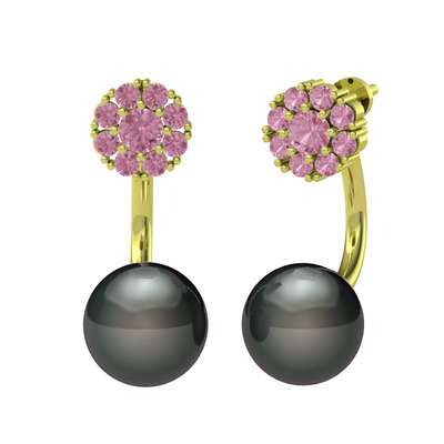 Pembe kuvars ve siyah inci 925 ayar altın kaplama gümüş küpe