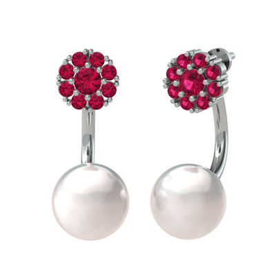 Rodolit garnet ve inci 8 ayar beyaz altın küpe