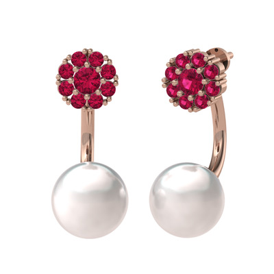 Rodolit garnet ve inci 925 ayar rose altın kaplama gümüş küpe