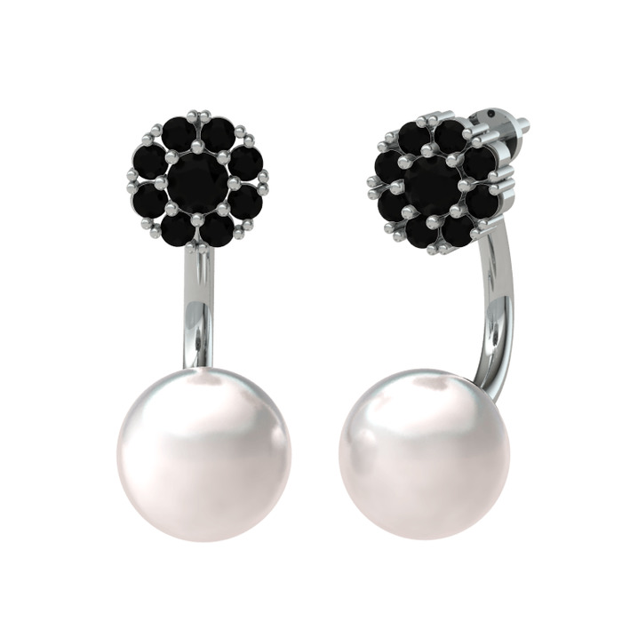 Siyah zirkon ve inci 14 ayar beyaz altın küpe