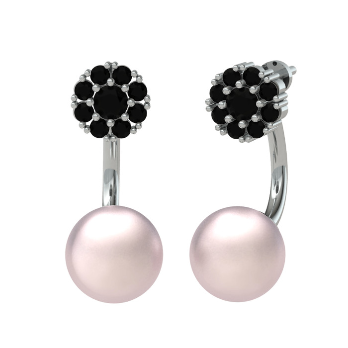 Siyah zirkon ve pembe inci 18 ayar beyaz altın küpe