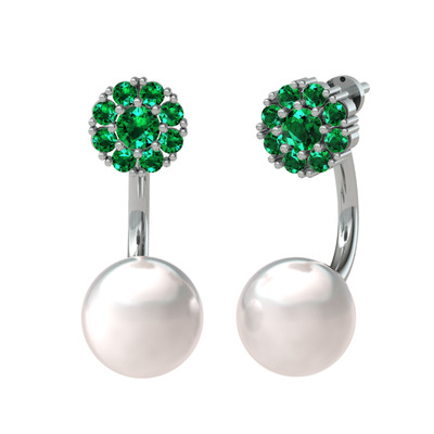 Yeşil kuvars ve inci 8 ayar beyaz altın küpe