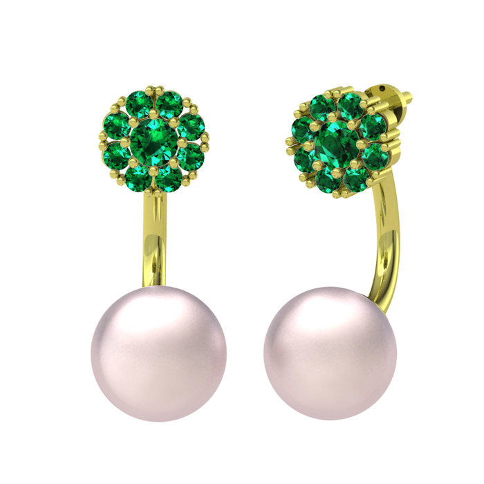 Yeşil kuvars ve pembe inci 925 ayar altın kaplama gümüş küpe