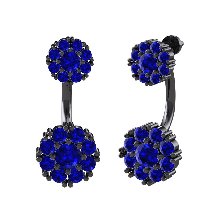 Lab safir 925 ayar siyah rodyum kaplama gümüş küpe