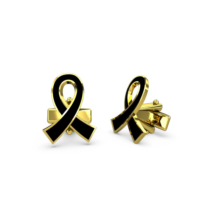 14 ayar altın kol düğmesi (Siyah mineli)