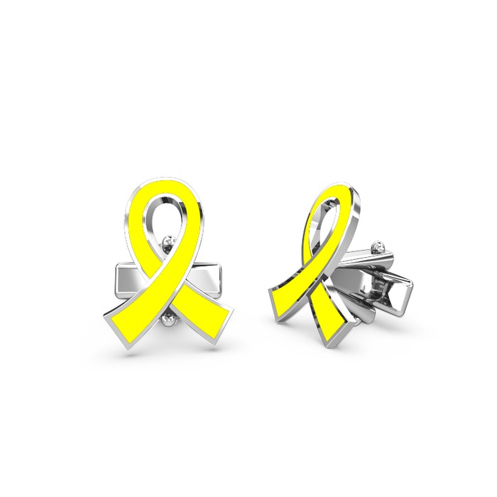 14 ayar beyaz altın kol düğmesi (Sarı mineli)