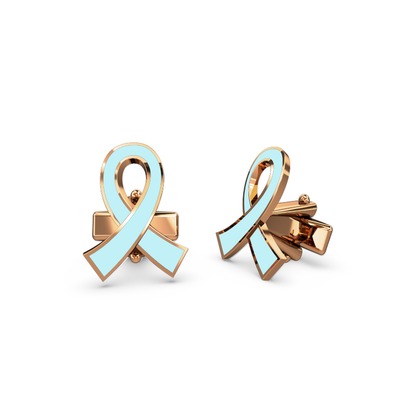 18 ayar rose altın kol düğmesi (Pastel mavi mineli)