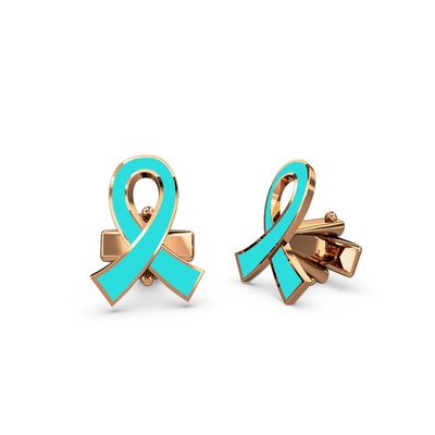 18 ayar rose altın kol düğmesi (Turkuaz mineli)