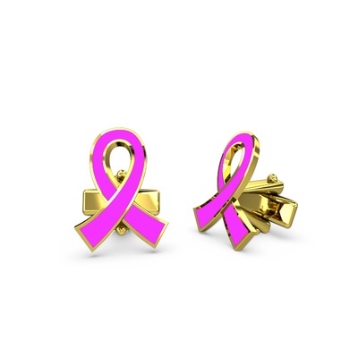 925 ayar altın kaplama gümüş kol düğmesi (Neon pembe mineli)