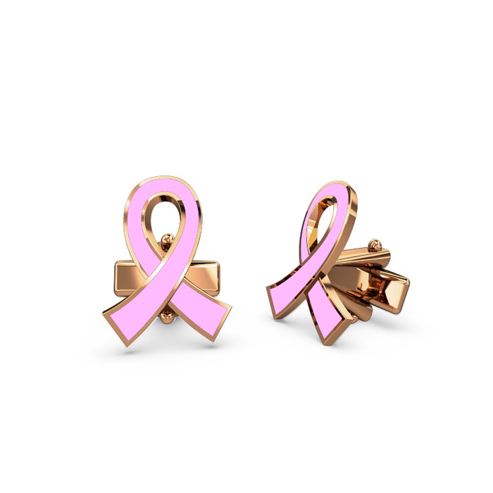 925 ayar rose altın kaplama gümüş kol düğmesi (Açık pembe mineli)