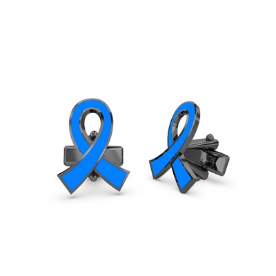 925 ayar siyah rodyum kaplama gümüş kol düğmesi (Mavi mineli)