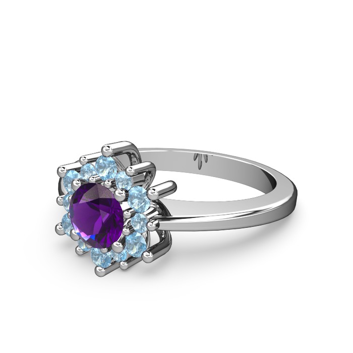 Akuamarin ve ametist 18 ayar beyaz altın yüzük