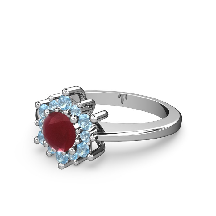 Akuamarin ve kök yakut 14 ayar beyaz altın yüzük