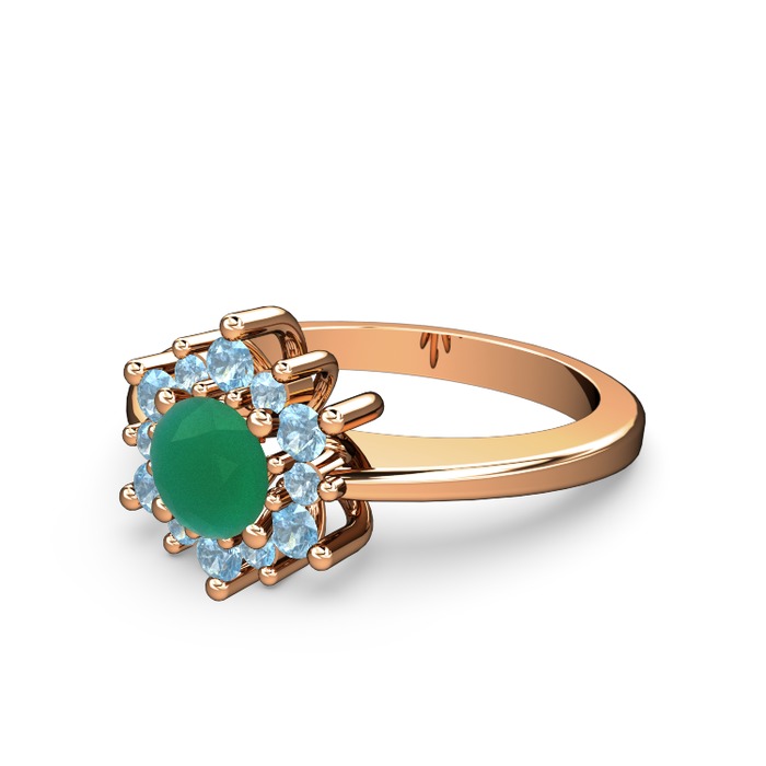 Akuamarin ve kök zümrüt 925 ayar rose altın kaplama gümüş yüzük