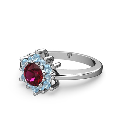 Akuamarin ve rodolit garnet 925 ayar gümüş yüzük