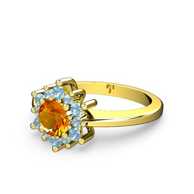 Akuamarin ve sitrin 18 ayar altın yüzük